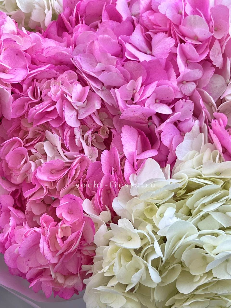 5 бело-розовых гортензий