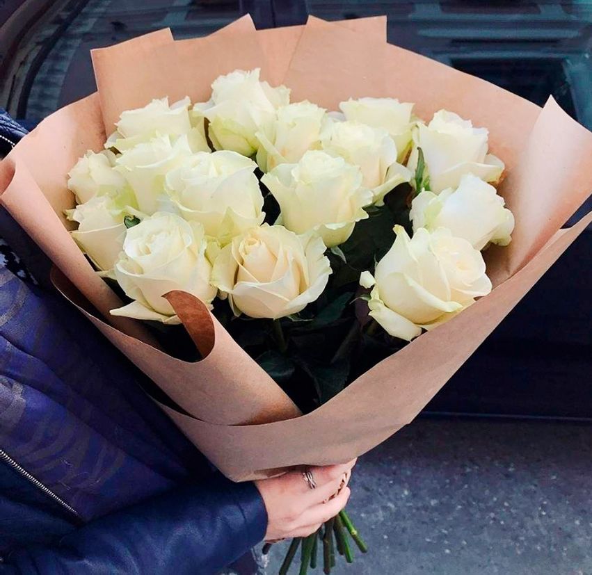 Белоснежные бутоны собраны в лаконичную форму с воздушной текстурой упаковки. Чистота линий и свежесть делают композицию универсальной для любого момента.