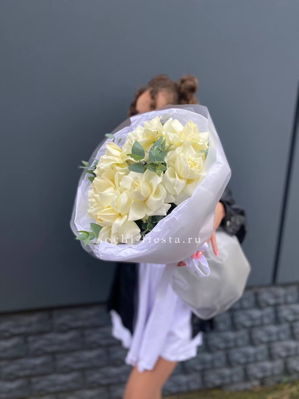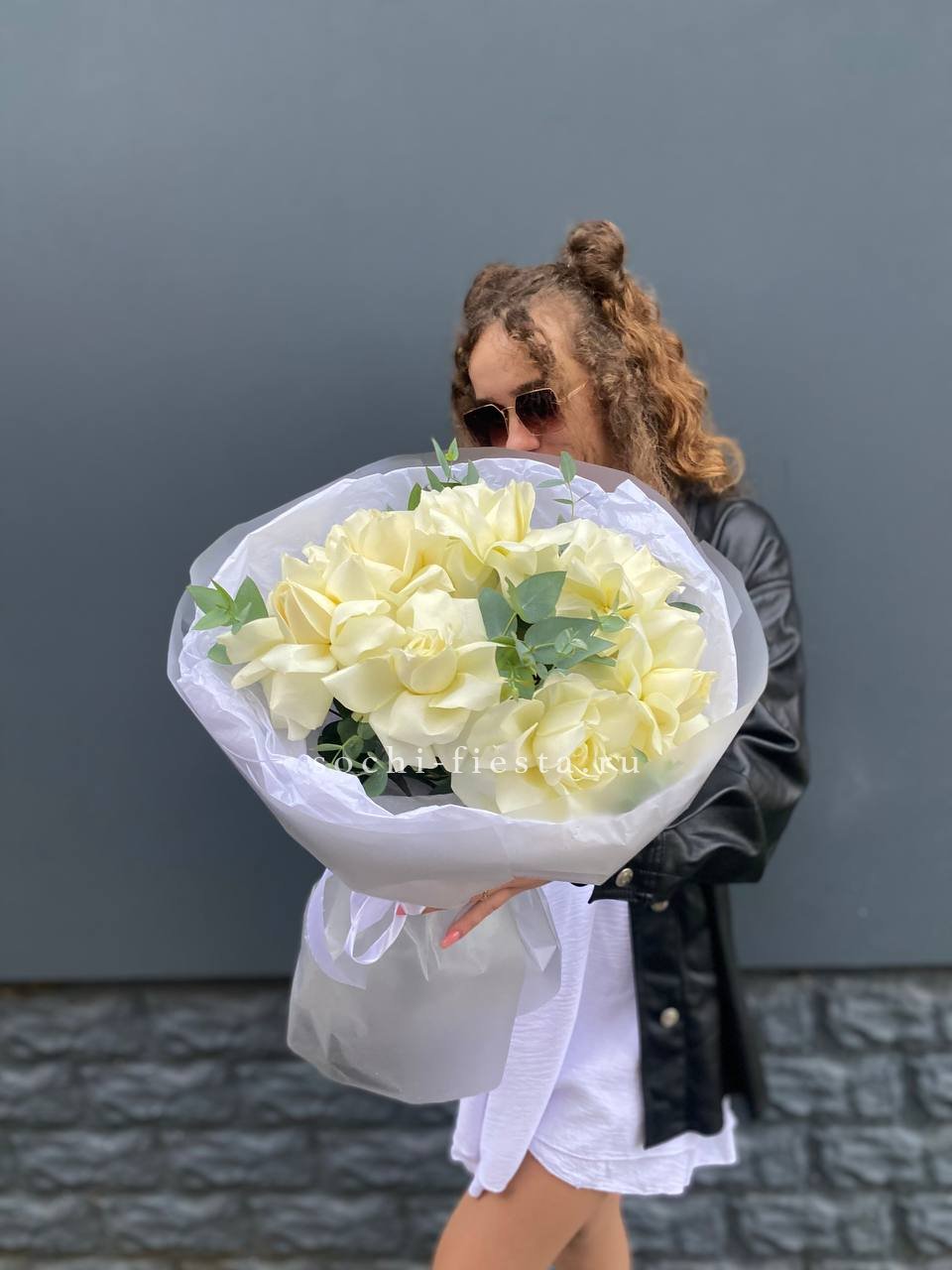 Изначальная цена указана за букет из 15 роз Состав букета на фотографии: 21 кенийских роз, лента, упаковка.