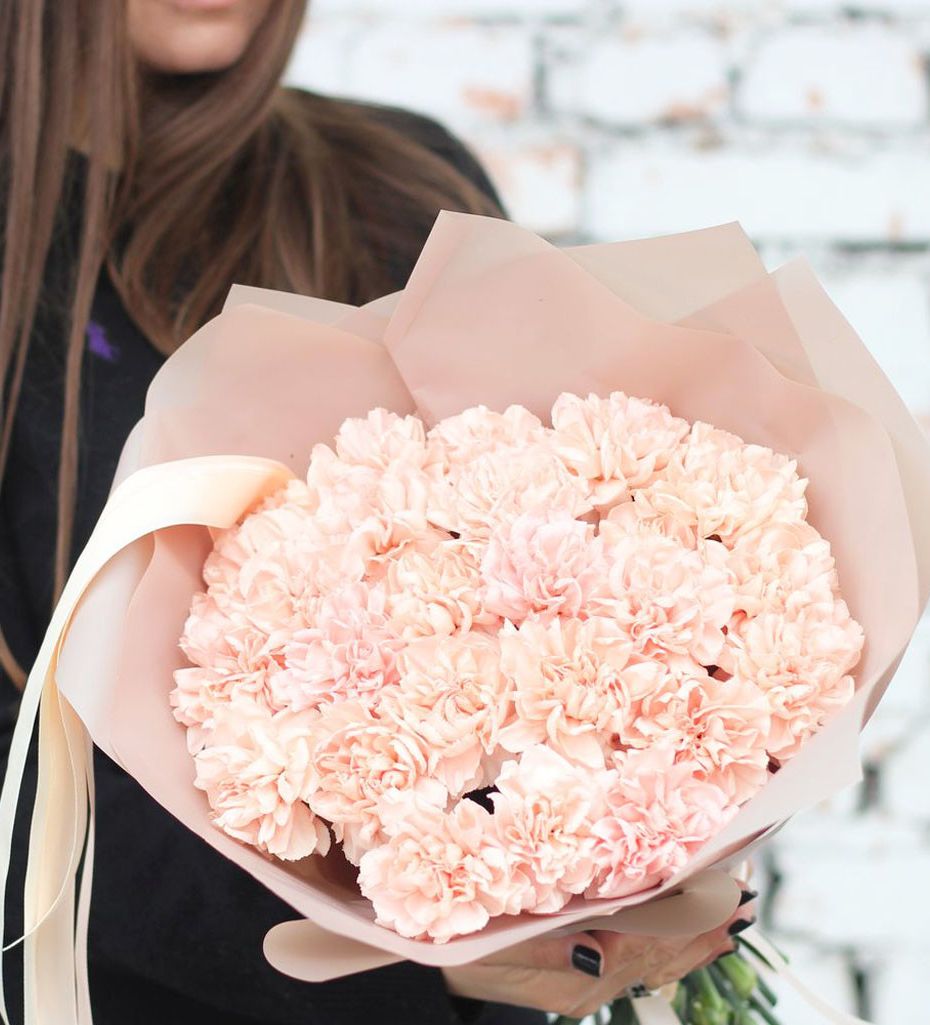 диантусы 15шт, тишью, упаковка, лента.