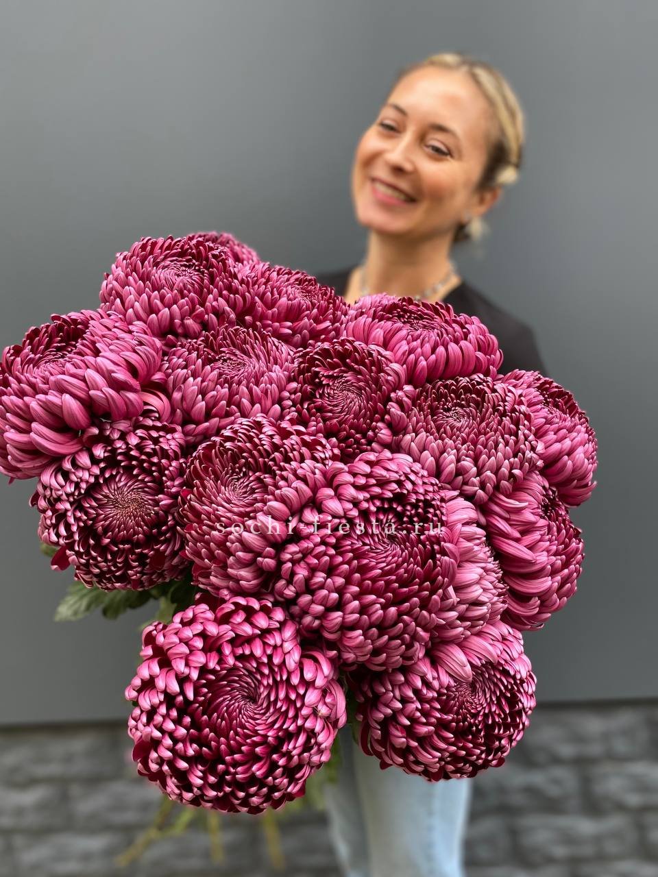 одноголовые хризантемы Бигуди, лента Количество на фото 15 шт.