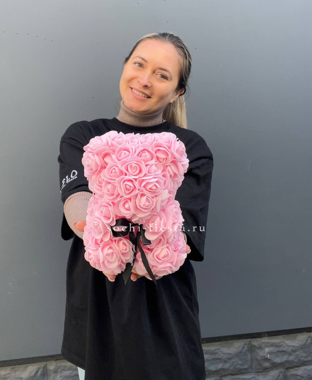 Медведь из фоамирана выглядит воздушным благодаря особой текстуре материала. Голубой цвет придает фигурке свежесть, а аккуратные пропорции делают её милым дополнением к любому подарку.