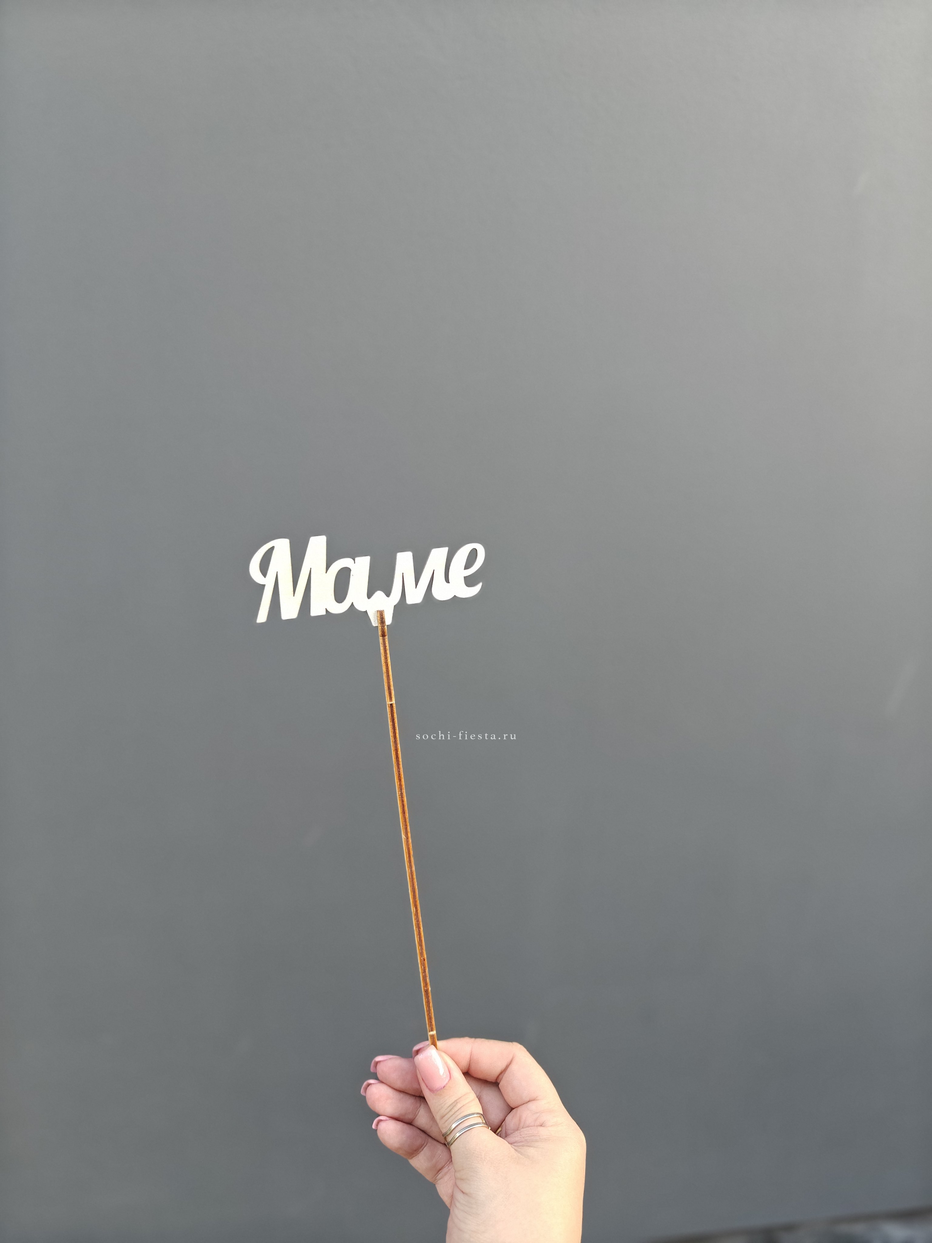 деревянный топпер. Может быть установлен в букет или композицию. Фактический внешний вид топпера может иметь незначительные отличия. Может быть заказан только совместно с букетом или цветочной композицией.