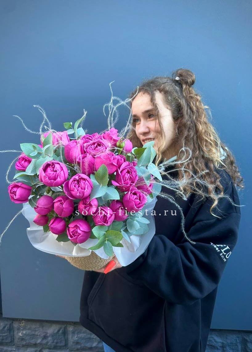 Для заказа товара "Пионовидные розы в джутовом кашпо " с доставкой в Севастополи нажмите в корзину