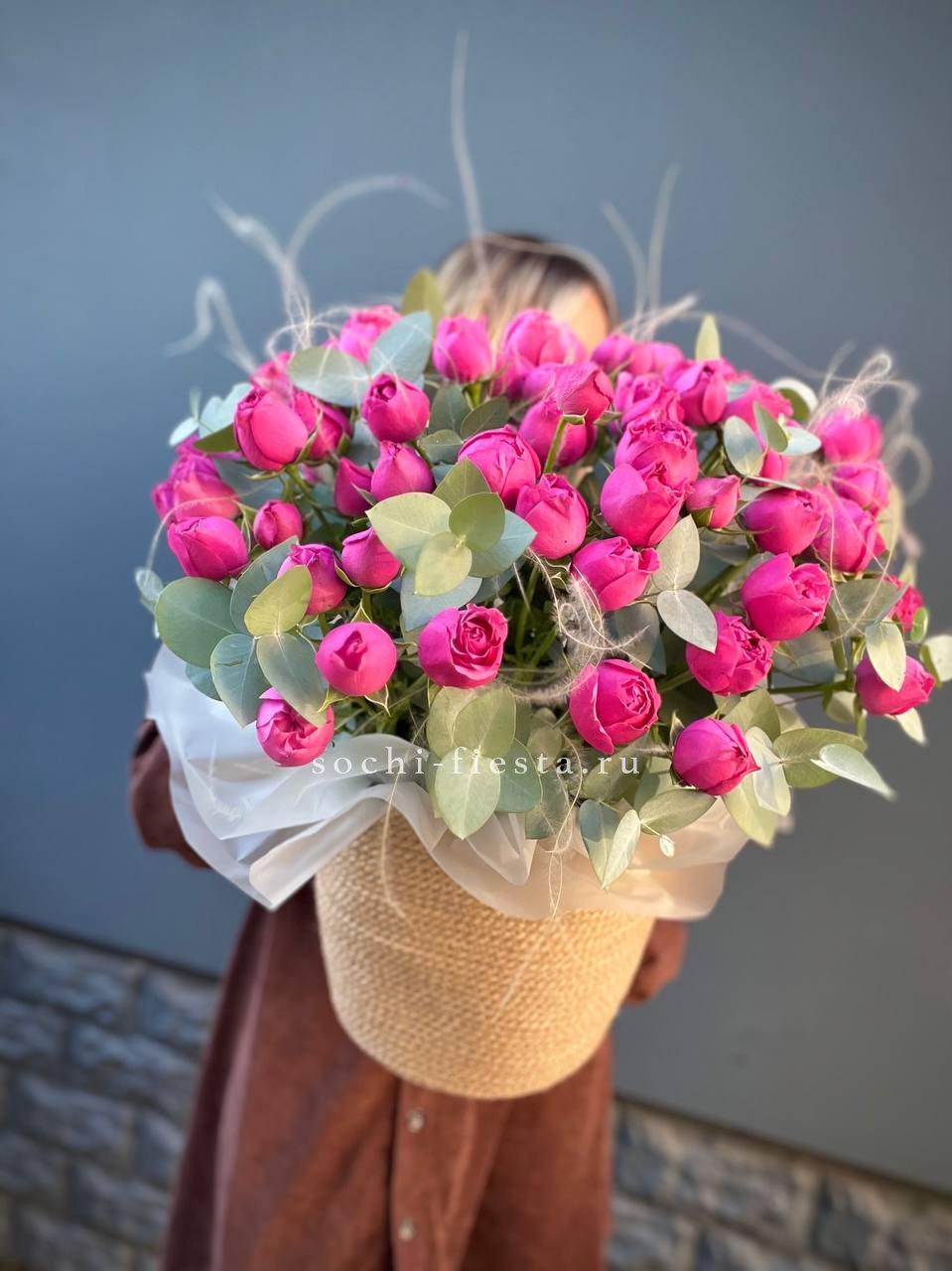Для заказа товара "Пионовидные розы в джутовом кашпо " с доставкой в Севастополи нажмите в корзину