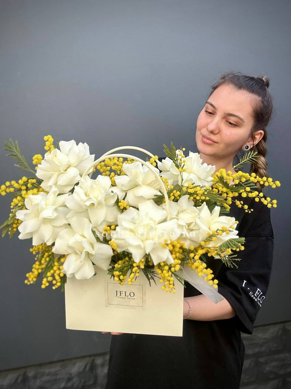 мимоза, французские розы, сумочка, оазис.