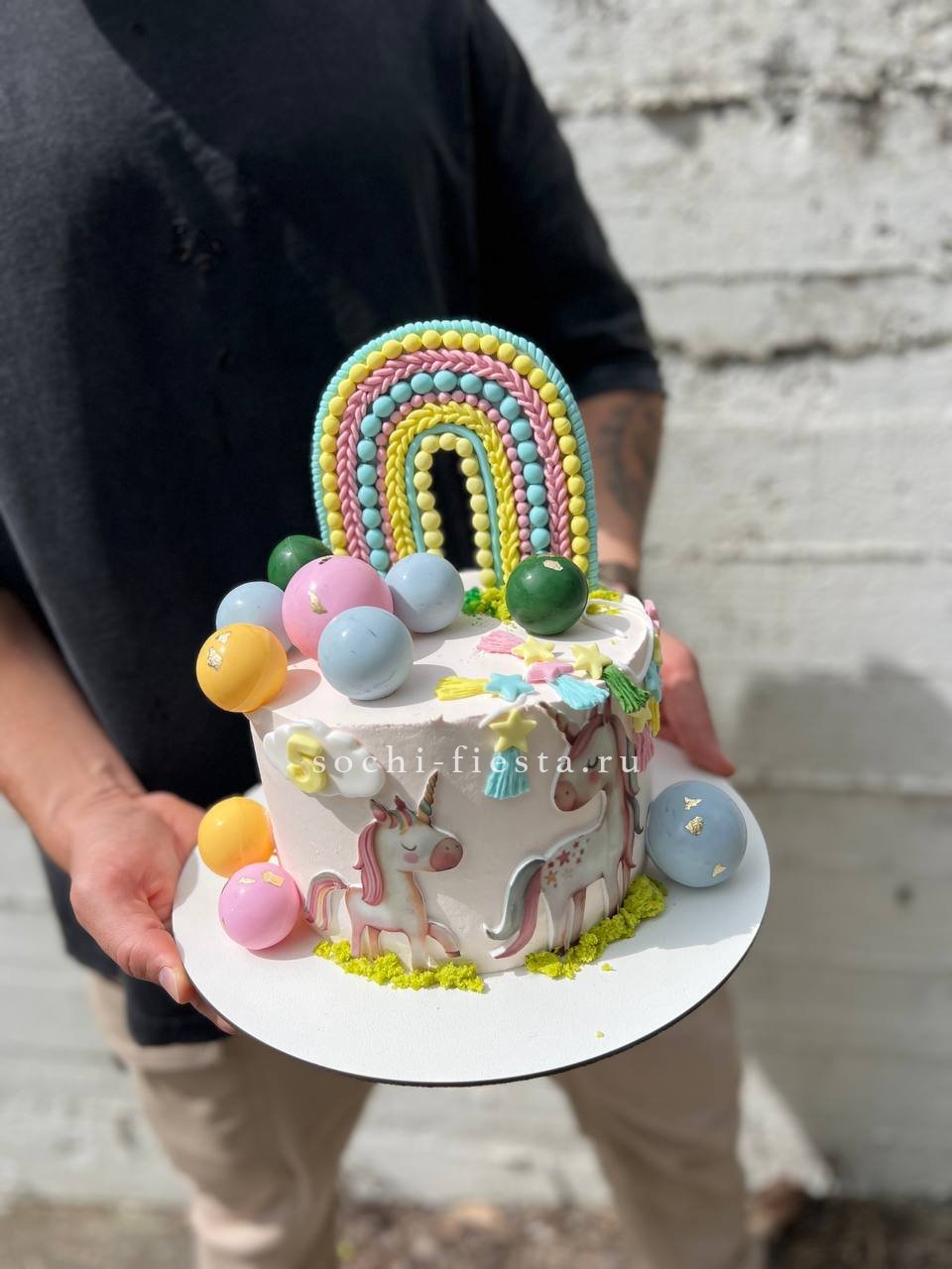 Единорог с радужной гривой притягивает взгляд яркими переходами оттенков. Его вытянутая форма и мягкая фактура делают игрушку приятной на ощупь и запоминающейся.