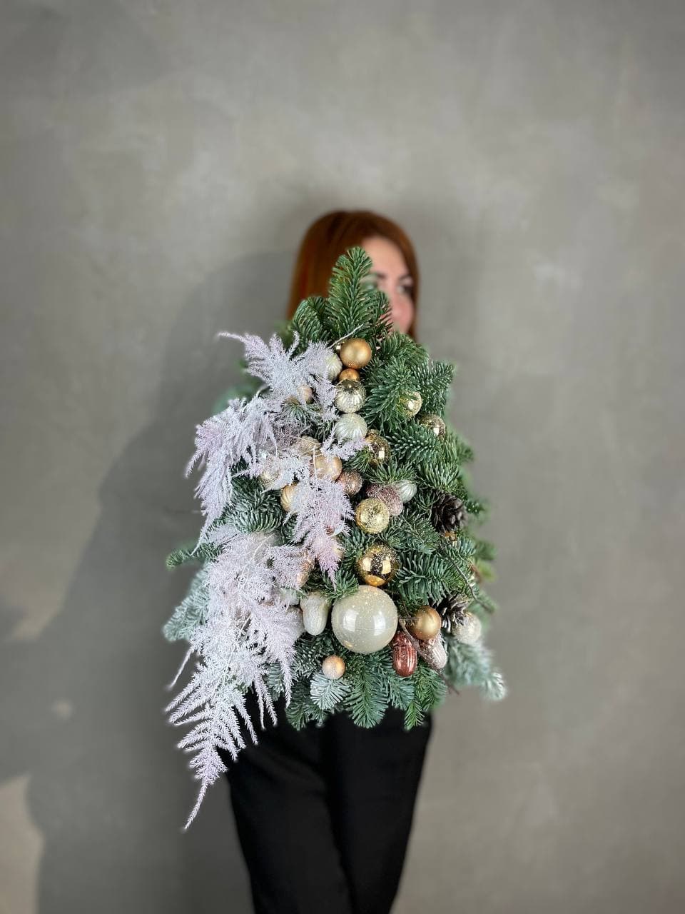 датский нобилис, аспарагус, кашпо, оазис, новогодние игрушки, декор ВНИМАНИЕ! Готовая композиция (декор) может иметь незначительные внешние отличия от примера на фотографии.