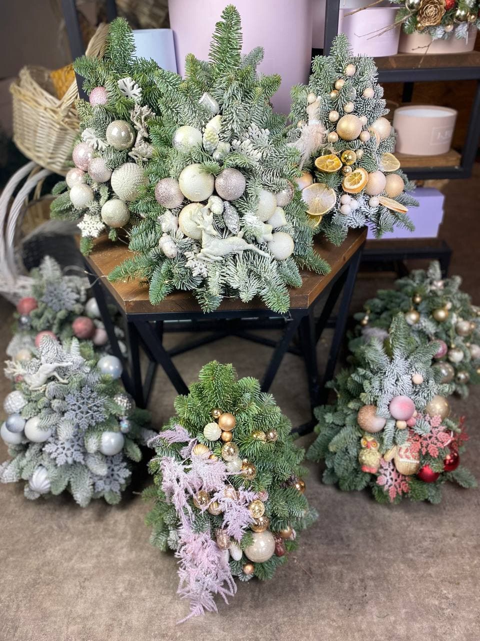 датский нобилис, набор ёлочных игрушек, кашпо, оазис, декор Готовая композиция может иметь незначительные внешние отличия от примера на фотографии.