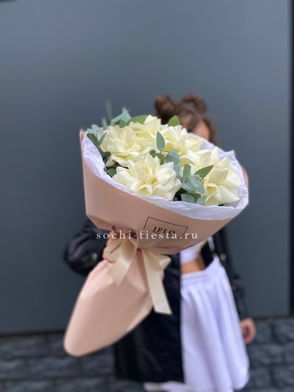 белая роза 303шт., оформление в букет или корзину на выбор.