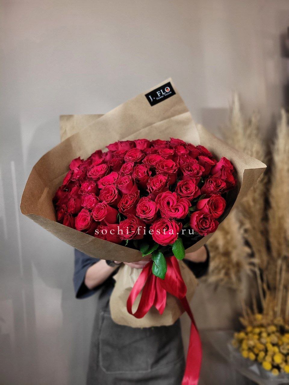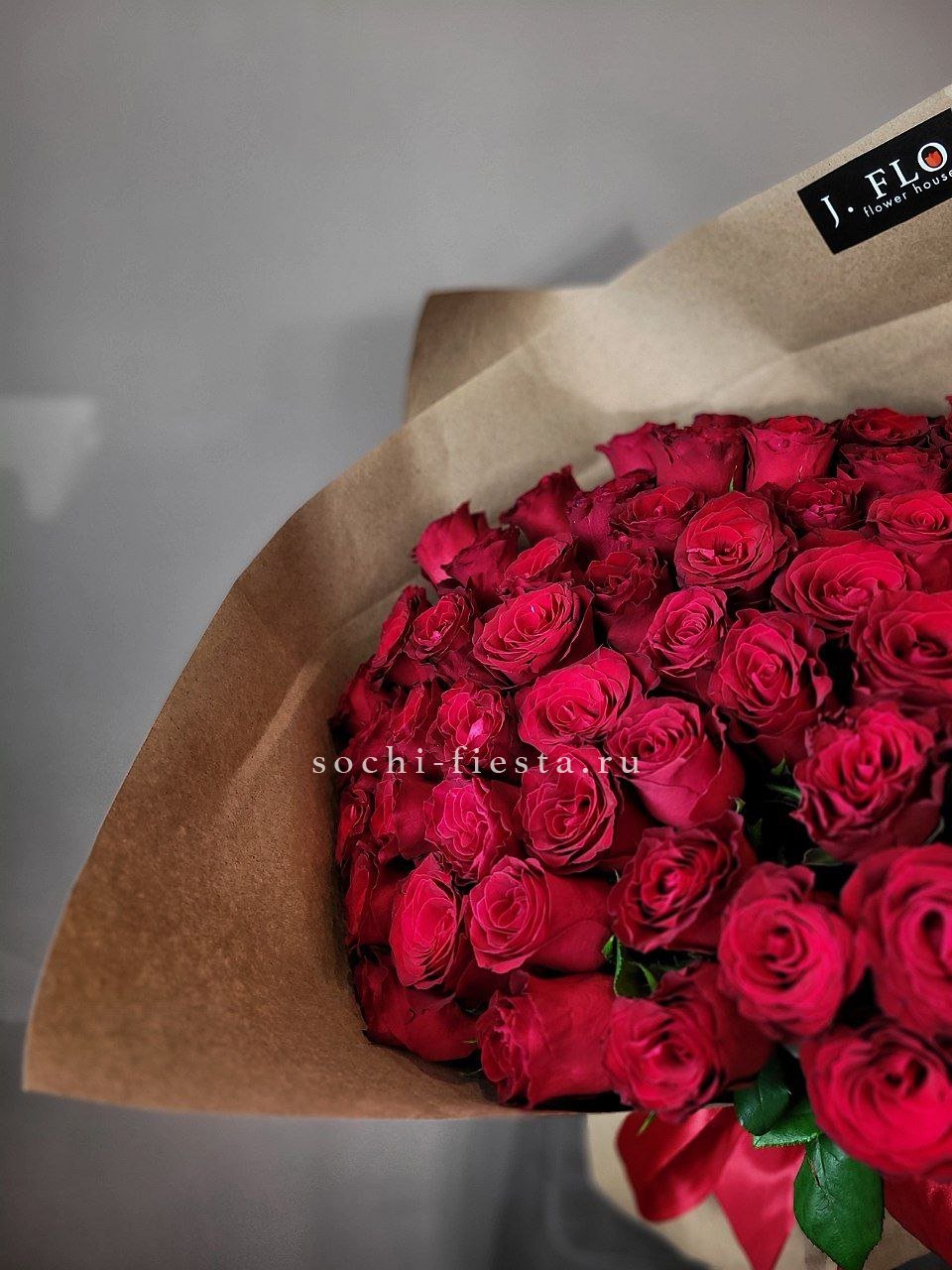 29 красных роз 70 см., лента, крафт или дизайнерская пленка.
