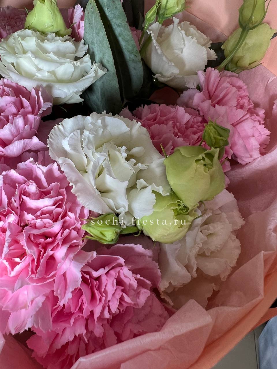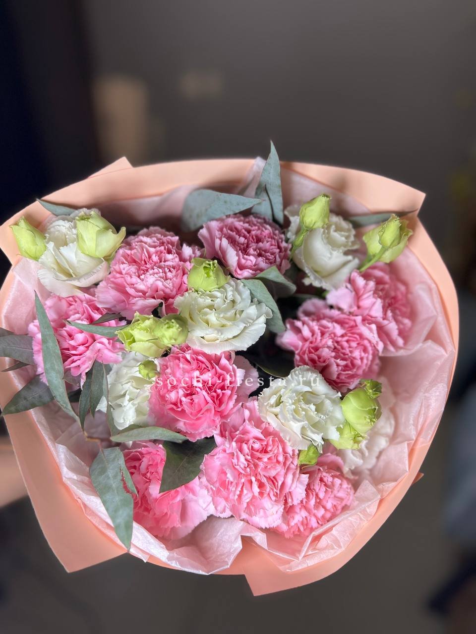 Для заказа товара "Букет гвоздик и эустом "Сири"" с доставкой в Севастополи нажмите в корзину