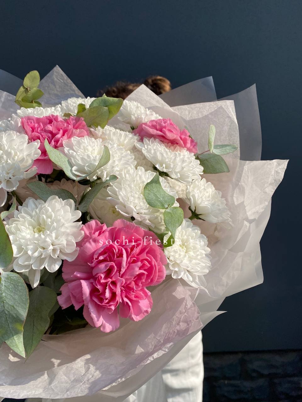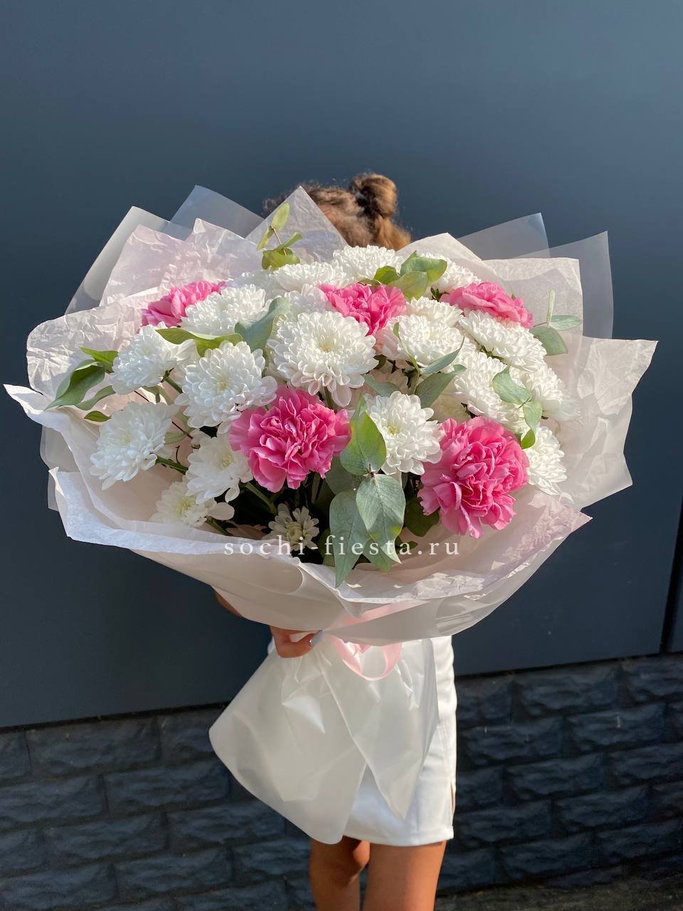 Для заказа товара " Букет хризантем и диантусов "Воздушный"" с доставкой в Севастополи нажмите в корзину