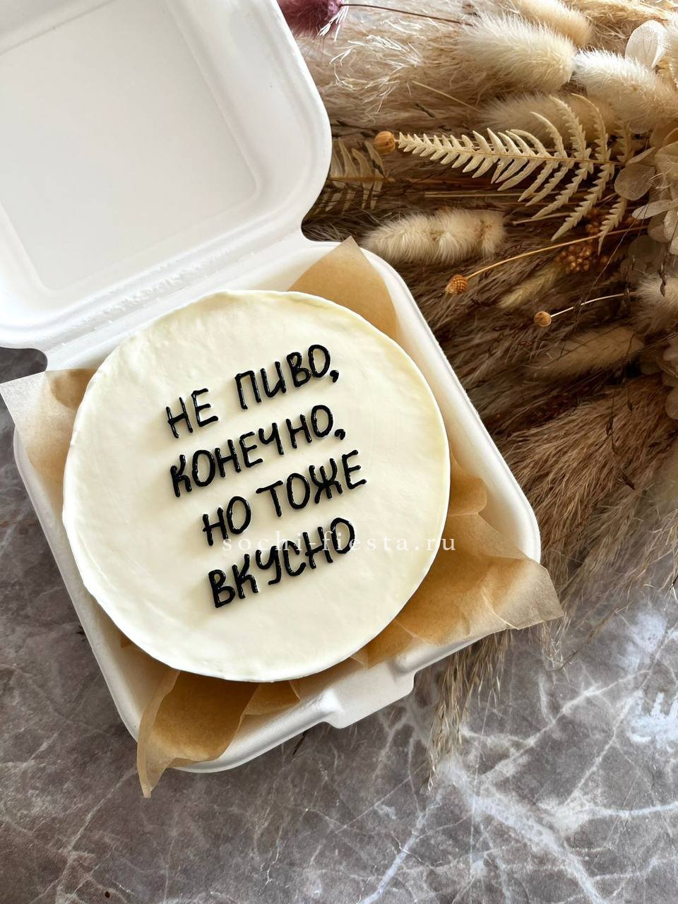 Слова благодарности становятся частью десерта, который умещается на ладони. Тёплая гамма крема и деликатный декор передают искренность без громких жестов.