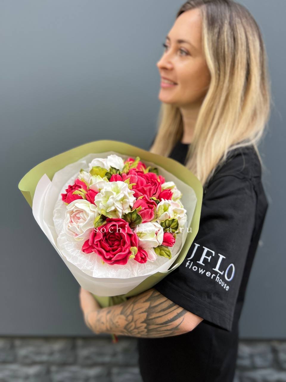 Мы работаем только со свежими цветами — букеты радуют от 7 до 14 дней и дольше при правильном уходе.